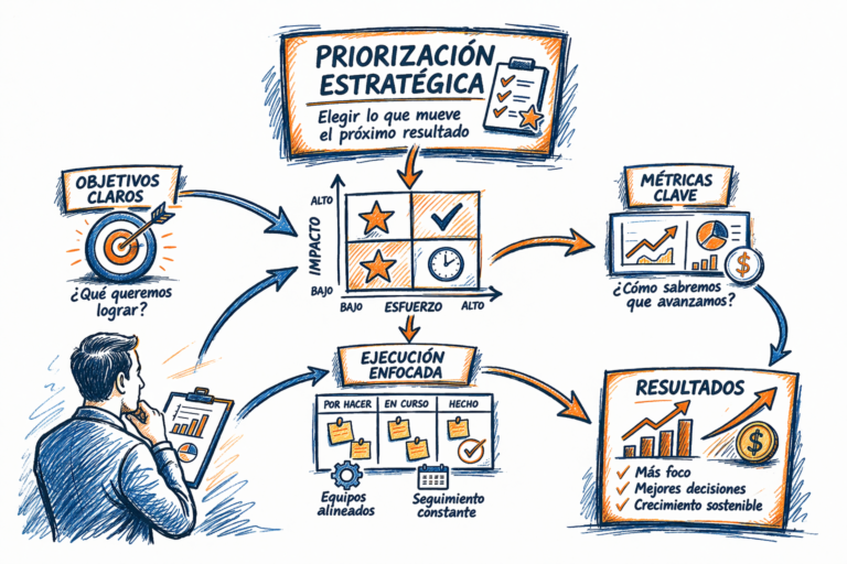 La priorización estratégica es la habilidad de decidir qué sí hacer… y qué NO hacer, para enfocar recursos en lo que realmente mueve el negocio.